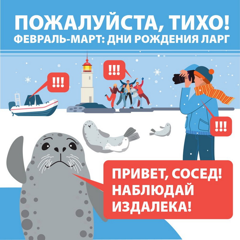 В феврале-марте во Владивостоке, на Маяке можно наблюдать за пятнистыми тюленями – ларгами. Мы - активны и любопытны, порой чересчур! Это может привести к тому, что животные уйдут в более спокойные места. В листовке отражены важные моменты, которые важно учитывать при наблюдении за ларгами, чтобы этого не случилось!