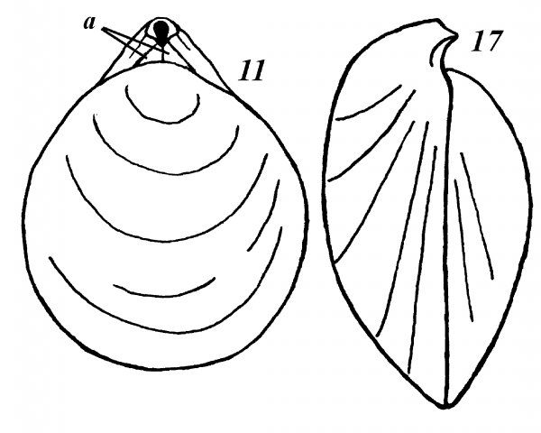 Описание. Раковины до 55 мм в длину, грязно-желтые, желто-коричневые, иногда с розовым оттенком или зеленовато-серые, вздутые, в плане ромбовидно-овальные, тонкие, гладкие, синусов и гребней нет. Клюв сильно загнут и прорезан маленьким фораменом, скошенным в сторону педальной створки (эпитиридный форамен). Ножка тонкая, гладкая, длинная. В брахиальной створке срединная септа простирается от макушки до одной трети длины створки.