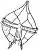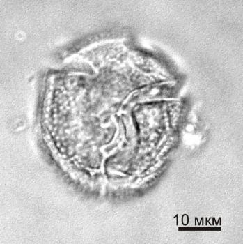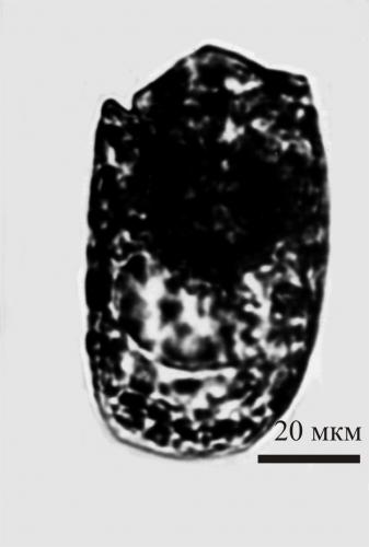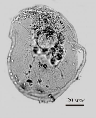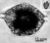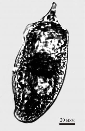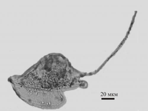 Клетка-споронт: вид нижней половины правой стороны клетки с щупальцем
