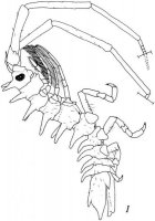 Антенна 1 достигает лишь середины глаза, 7-8-члениковая. Антенна 2 достигает заднего края головы, 7-8-члениковая. Дистальный членик щупика ногочелюстей с 3 крючками.