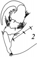 Антенна 2 массивная, значительно короче тела; вдоль медиального края члеников 4-5 стебелька ряд маленьких низких бугорков; жгутик состоит из 5 члеников и когтя.