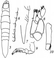 Эндопод уропода удлиненно-треугольной формы, дистальный конец закруглен, длина в 2.3 раза превосходит ширину; экзопод в 2.6 раза короче эндопода, длина в 3 раза превосходит ширину.