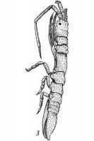 Переоподы 1-3 короткие и крепкие, вентральные края их проподусов с 4 крепкими заостренными шиповидными щетинками. Вентральный край меруса переопода 1 с 3-5 острыми шиповидными щетинками, переопода 3 с 5-8 заостренными удлиненными шиповидными щетинками; между дистальными шиповидными – простые щетинки; переоподы 4-7 относительно короткие и крепкие, вооруженные шиповидными и простыми щетинками. Уроподы немного заходят за задний край плеотельсона, обе ветви удлиненно-овальные, по краям несут шиповидные и перистые щетинки, экзопод почти в 2 раза шире и немного длиннее эндопода; дистомедиальный отросток протопода достигает 0.4 длины эндопода.