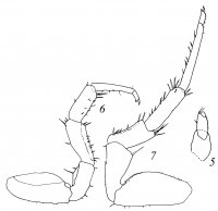 Антенна 1 заходит за середину членика 4 стебелька антенны 2. Антенна 2 в 2.5 раза короче тела, едва достигает середины переонита 3, покрыта щетинками;. жгутик значительно короче стебелька, 10-13-члениковый. Наружный дистальный угол членика 2 щупика ногочелюстей оттянут в довольно длинную округло-треугольную лопасть. Переоподы стройные и длинные. Боковые края пениса прямые; дистальный край плавно закруглен, длина в 1.5 раза превышает ширину. Мужской отросток плеопода 2 в 1.1 раза длиннее эндопода, заметно выдается за его край, дистально заострен. Эндопод уропода в 5.6 раза короче протопода, удлиненно-треугольный, дистальный конец закруглен.