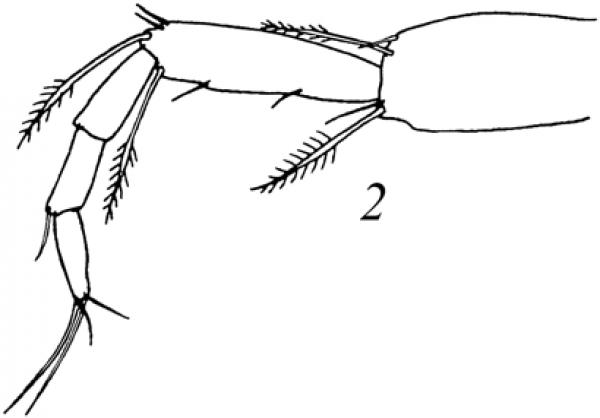 Переопод 2 крепкий, с умеренно расширенными члениками; длина карпуса более чем в 3 раза превосходит его ширину; проподус и карпус несут по 2 ряда неравнодвураздельных щетинок. Крышечка широкая, округло-прямоугольной формы, ширина примерно в 1.1 раза превышает длину. Эндопод уропода в 2.6 раза длиннее протопода, длина в 9.4 раза превосходит ширину; экзопод уропода примерно в 2.5 раза короче эндопода.