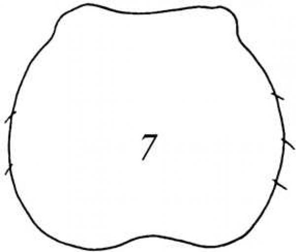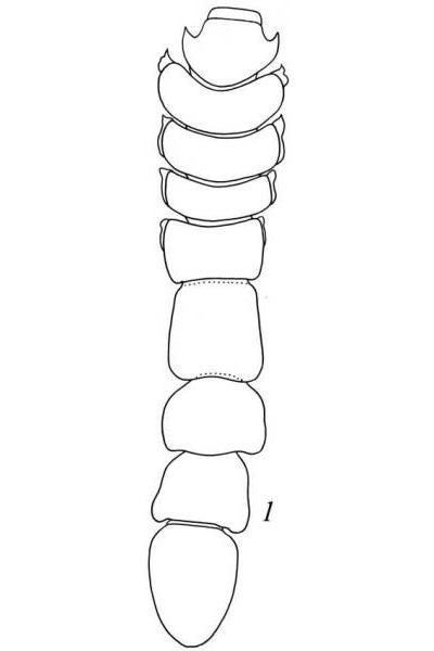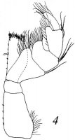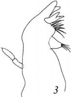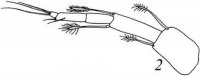 Дистовентральный угол базиса переопода 1 с 1 длинной слабоперистой щетинкой; дистодорсальный угол меруса с 2-5 перистыми щетинками.