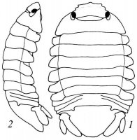 Описание. Самка. Тело уплощенное, длина примерно в 5 раз превосходит ширину. Голова составляет примерно 0.1 длины тела, длина составляет 0.7 ширины и в 1.25 раза больше длины переонита 1. Переонит 1 хорошо развит; отношения длин переонитов 2-7 к длине переонита 1 составляют, соответственно: 1.0, 0.9, 1.1, 2.1, 1.9, 1.6; боковые края переонитов 1-3 и 6-7 закруглены, у переонитов 4-5 почти прямые; переониты 4-5 почти прямоугольной формы, переонит 4 слегка расширяется кпереди, переонит 5 – кзади. Антеролатеральные отростки коксов 1-3 короткие, треугольные, оканчиваются короткой щетинкой, у кокса 4 антеролатеральный угол оттянут в едва заметную округлую лопасть; задние края коксов закруглены. Плеотельсон удлиненно-овальный, с закругленным постеролатеральным краем, длина в 1.3 раза превосходит ширину.
