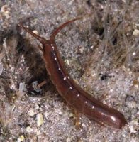 Окраска темно-красная или красно-бурая. Длина тела до 35 мм.