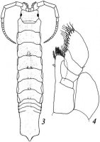 Переопод 1: длина базиса в 2.4 раза превосходит ширину; отношение длины к ширине исхиума–дактилуса составляет, соответственно: 1.6, 0.9, 1.2, 3.3, 5.1 для каждого из члеников, отношение длины каждого из этих члеников к длине базиса: 0.6, 0.3, 0.4, 0.8, 0.5; вентральный край карпуса с 5 крепкими неравно двураздельными щетинками, из которых дистальная равна 0.4 длины проподуса; вентральный край проподуса примерно с 12 короткими щетинками, заключенными в кутикулярную мембрану. Переопод 2 крепкий, длина карпуса почти в 2.5 раза превосходит ширину, вентральный край с 6-7 крепкими щетинками. Переопод4 с сильно расширенными, уплощенными карпусом и проподусом; длина карпуса почти в 2.5 раза, проподуса менее чем в 2 раза превосходит их ширину. Переоподы 5-7 со слабо расширенными карпусом и проподусом, несущими незначительное число длинных щетинок; длина карпуса переопода 5 почти втрое превосходит его ширину.
