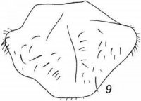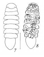 Переон. Передние лопасти коксов длиннее задних, широко закругленные, видны сверху на всех переонитах. Плеотельсон округлой формы, длина чуть меньше или примерно равна ширине, постеролатеральные углы закруглены, без выемок и лопастей, задний край с отчетливой дистально закругленной медиальной лопастью; боковые края в задней трети несут по 4-7 зазубрин, между которыми сидят щетинки.
