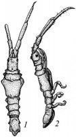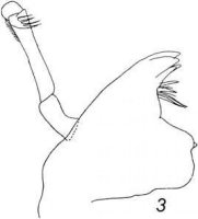 Антенна 1 достигает примерно дистального края членика 2 стебелька антенны 2. Антенна 2 крепкая, достигает 0.7-0.8 длины тела; жгутик 4-члениковый, дистальный членик когтевидный.