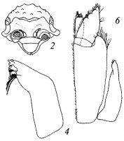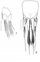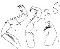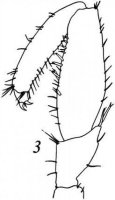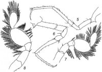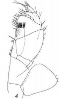 Переоподы 5-7 толстые, массивные. Эндопод уропода удлиненно-треугольный, длина в 2 раза превышает ширину; экзопод почти прямоугольный, в 2.3 раза короче эндопода, длина примерно в 2.5 раза превосходит ширину.