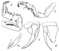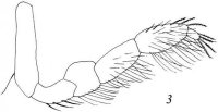 Антенна 1: членик 1 у заднего и антеролатерального углов несет по 1 перистой и 2 простым щетинкам, передний край оттянут в большой шпоровидный зубец; членик 2 в дистальной части с 6 простыми и перистыми щетинками, его поверхность покрыта сетью из тонких гребней, передний край с 1 или 2 маленькими зубцами посередине; членик 3 с длинной простой щетинкой на переднем крае и многочисленными дистальными эстетасками; вентральный жгутик с 3 длинными дистальными щетинками; дорсальный жгутик с 4 длинными дистальными щетинками и 1 эстетаском у основания. Антенна 2 достигает дистального края переонита 4, стебелек 4-члениковый, членик 1 самый большой, с легкими кутикулярными гребнями, членики 2-4 с простыми и перистыми дистальными щетинками; жгутик 5-члениковый, 0.7 длины стебелька, членики с короткими простыми дистальными щетинками, последний членик с 4 длинными терминальными щетинками. Переоподы 1 и 2 крепкие, сходной формы, 2 немного длиннее, чем 1. Длина базиса переопода 1 в 2.2 раза превосходит ширину, базис с мощным дистальным мыщелком, с двух сторон заключенным в кутикулярные мембраны; отношение длины исхиума–дактилуса к длине базиса составляет, соответственно: 0.7; 0.4; 0.3; 0.9; 0.3; карпус треугольной формы, смещен под вентральный край проподуса, с маленькой шиповидной щетинкой на дистовентральном углу; длина проподуса в 2.5 раза превосходит ширину, 0.6 длины вентрального края занимает сочленение с карпусом, пальмарный край слегка вогнутый, ограничен тупым выростом, несущим шипики, по бокам от которого расположены 2 короткие крепкие шиповидные щетинки; дактилус с зазубренным дорсальным краем и крепким когтем. Переоподы 3-5 сходной формы, длина слегка увеличивается от передних к задним. Длина базиса переопода 3 в 6.1 раза превосходит ширину, отношение длины исхиума–дактилуса к длине базиса составляет: 0.9; 0.3; 0.2; 1.1; 0.6; вентральные края базиса и исхиума прямые, дорсальные сильно выпуклые, у исхиума в дистальной половине с 2 субмедиальными кутикулярными пластинками, охватывающими мерус; мерус с 1 крепкой дистодорсальной и 1 тонкой вентральной щетинкой; карпус с 1 большой дистовентральной шиповидной щетинкой; вентральные края проподуса и дактилуса покрыты крошечными щетинками, вентральный край проподуса вогнутый, в дистальной части несет 3 большие шиповидные щетинки; дактилус слит с когтем, дистально двураздельный. Переоподы 6 и 7 сходной формы. Длина базиса переопода 6 в 5 раз превосходит ширину, отношение длины исхиума–дактилуса к длине базиса составляет: 0.5; 0.14; 0.14; 0.4; 1.9; мерус с 1 крепкой дистодорсальной и 1 тонкой вентральной щетинкой. Коксальные пластинки с тонкими кутикулярными бороздками, края ровные. Плеоподы сходной формы, протопод с 2 ретинакулами, эндопод 0.7, экзопод – 0.8 длины протопода, обе ветви с 5 длинными дистальными перистыми щетинками, только у плеопода 5 эндопод с 3 щетинками. Уроподы равны 0.9 длины плеотельсона, протопод с 2 неравной длины дистолатеральными щетинками; эндопод равен 1.5 длины протопода, с 5 простыми терминальными щетинками, самая длинная щетинка примерно в 3 раза длиннее эндопода; экзопод равен 2.0 длины протопода, с 6 перистыми проксимодорсальными щетинками и 5 перистыми и 3 простыми длинными терминальными щетинками, 2 из которых длиннее остальных.