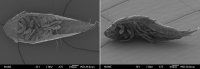 Окраска светлая, в спирте желтовато-серая без темных пятен. Длина тела до 5 мм.