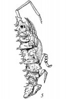 Самец. Длина тела примерно в 3.5 раза превышает ширину на уровне переонита 5. Голова сливается с переонитом 1 со следами слияния в виде латеральных насечек; антеролатеральный край полукруглой формы. Глаза расположены чуть кпереди от латеральных насечек. Длина переонитов постепенно увеличивается по направлению к переониту 4. Плеон сужается к закругленному заднему концу, несегментированный, но границы между плеонитами 1 и 2, а иногда и последующих, видны в виде латеральных вдавлений. Антенна 1 3-члениковая, антенна 2 5-члениковая. Переоподы сходной формы, мерусы и карпусы в различной степени слитые. На вентральной стороне у основания плеона пара слабо заметных бугорковидных рудиментарных плеоподов.