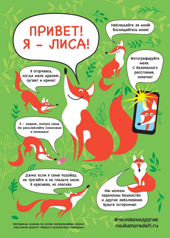Остров Русский - излюбленное место для прогулок жителей Владивостока и место обитания лис. Красавицы-лисы привыкли к гуляющим людям, но продолжают оставаться хищными и дикими. Нас, двуногих и любопытных, могут и восхитить, и укусить. Для безопасных встреч предлагаем правила, которыми поделились семьи - участники нашего проекта. Научными консультантами одобрено!