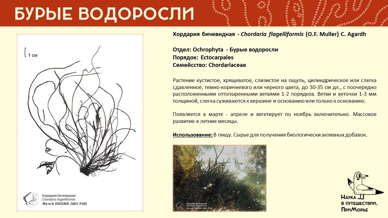 Приглашаем вас к участию в проекте по исследованию макро- и микроводорослей. Проект разработан музеем Национального научного центра морской биологии совместно с Лабораторией морской микробиоты и Лабораторией физиологии автотрофных организмов ННЦМБ ДВО РАН. Мы надеемся, что совместные исследования любопытных и активных путешественников и учёных помогут расширить территорию изучения водорослей и представления об их разнообразии, а также внесут вклад в развитие системы регистрации цветных приливов. Приглашаем к участию: семейные экспедиционные отряды маршрута “Наука в путешествии. ПриМорье”, активных и интересующихся путешественников любого возраста, организаторов детских летних лагерей и экспедиций на морском берегу. Здесь вы найдёте подробные описания методов сбора водорослей, определительные материалы, статьи по тематике исследований.