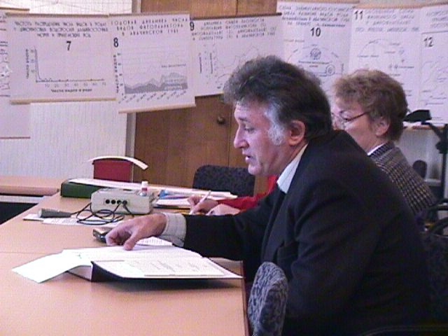 Заседание диссертационного совета по экологии в ДВГУ, 1990-е или начало 2000-х гг. Фотография предоставлена ДВФУ.
