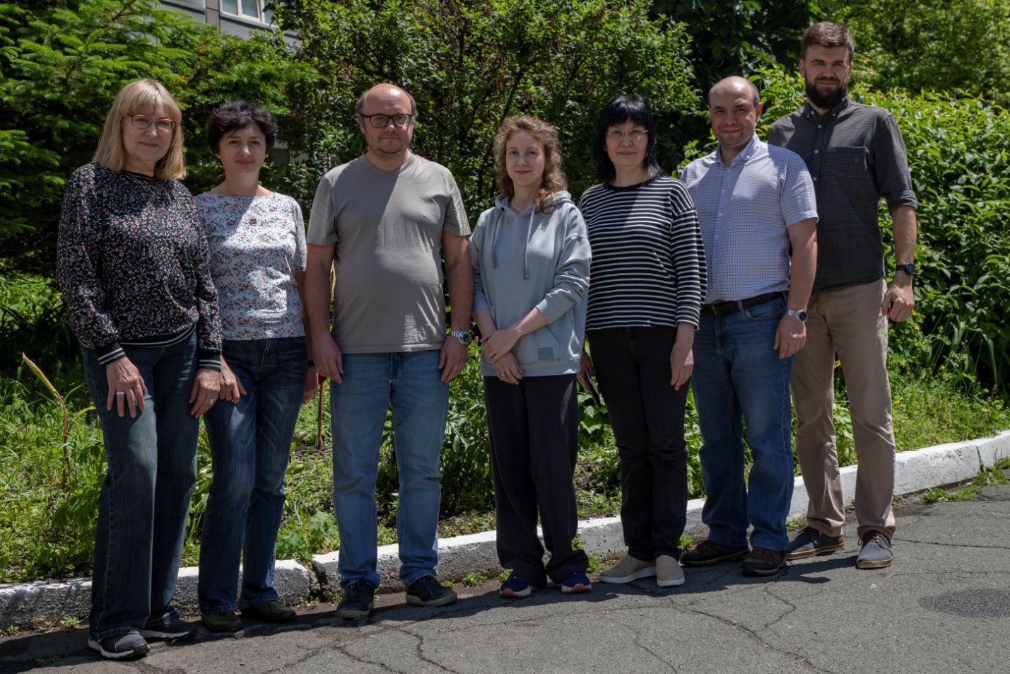 Рис. 1. Участники встречи малакологов Владивостока, ФНЦ Биоразнообразия ДВО РАН и Архангельска, ФИЦКИА УрО РАН (слева направо): к.б.н. Л.А. Прозорова, к.б.н. Е.М. Саенко, д.б.н. И.Н. Болотов, к.б.н. Е.С. Коноплёва, М.О. Шарый-Оол, к.г.н. А.В. Кондаков, к.б.н. И.В. Вихрев.