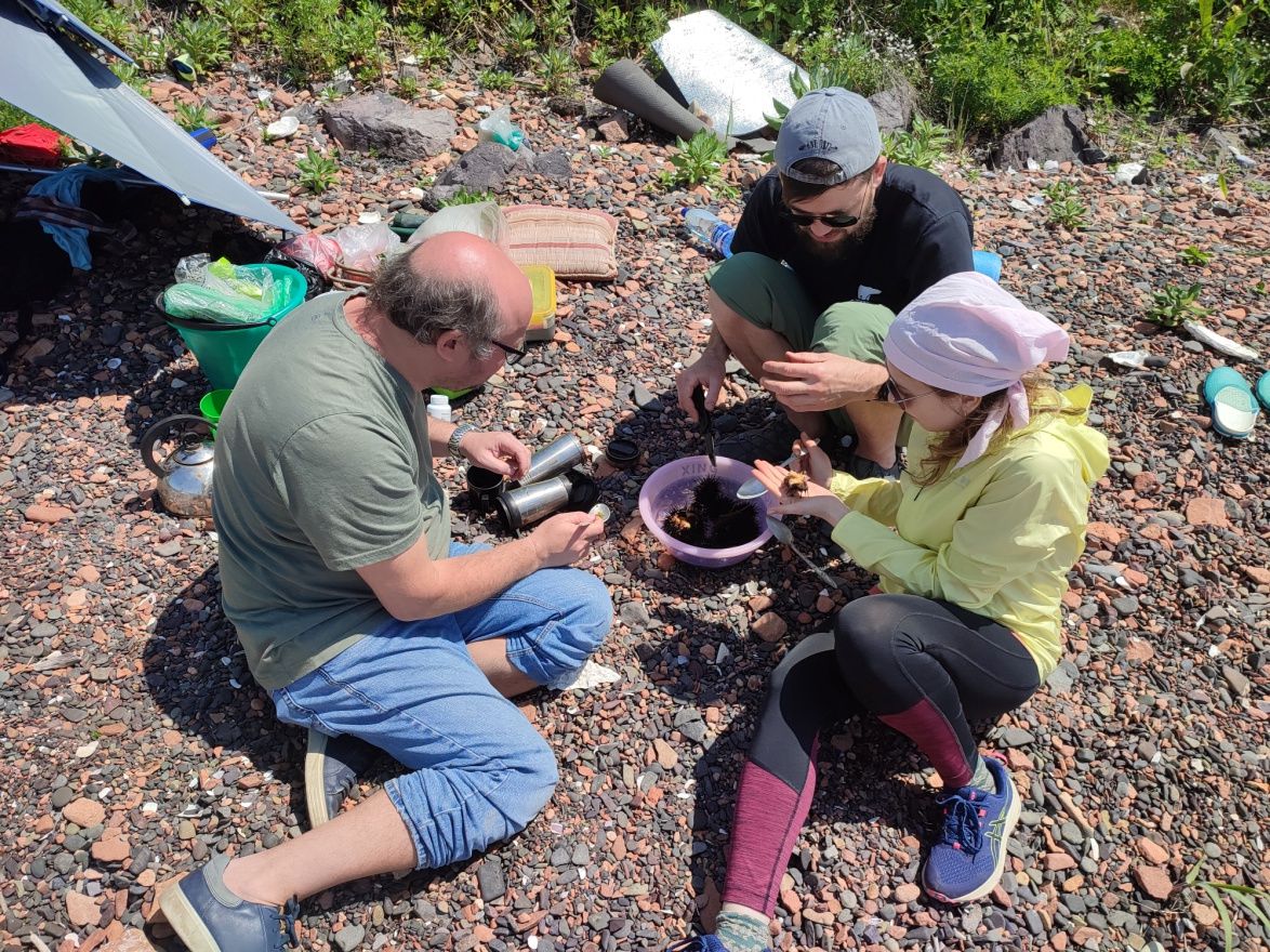 Рис. 4. Дегустация морской биоты на мысе Ликандера острова Попова.
