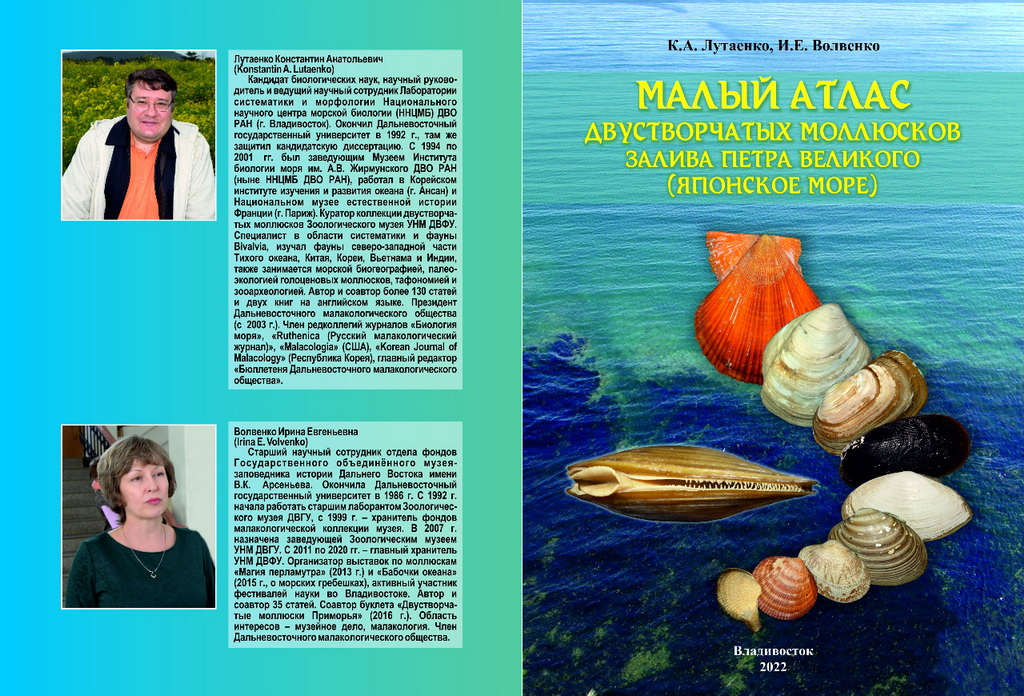 Дальневосточные учёные-малакологи в конце 2022 г. выпустили новую книгу - 2 издание «Малый атлас двустворчатых моллюсков залива Петра Великого (Японское море)». Авторами являются научный руководитель Лаборатории систематики и морфологии Национального научного центра морской биологии им. А.В. Жирмунского ДВО РАН К.А. Лутаенко и главный хранитель Учебно-научного музея ДВФУ И.Е. Волвенко.