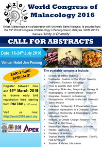 19 международный Конгресс UNITAS MALACOLOGICA (UM) пройдет с 18 по 24 июля 2016 г. на острове Пенанг, Малайзия.