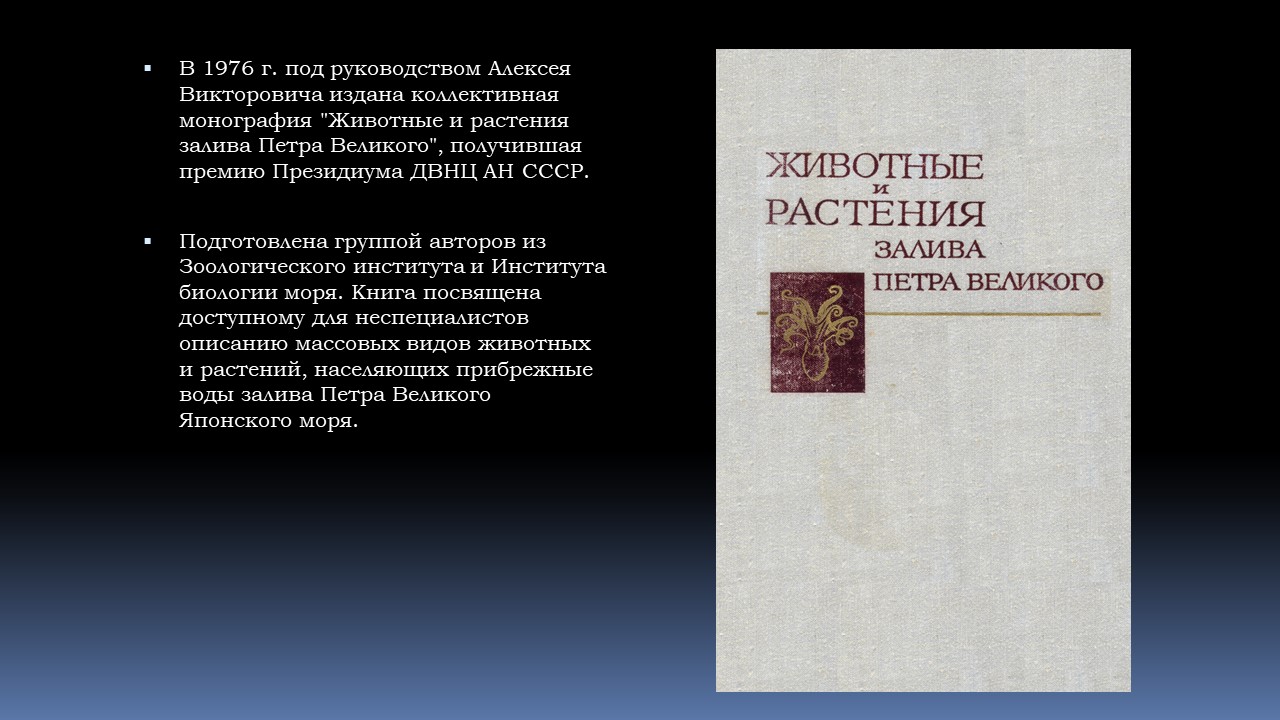 Загрузить книгу (размещена с разрешения автора, д.б.н., профессора, Заслуженного деятеля науки РФ Надежды Константиновны Христофоровой); - Академик от моря: А.В. Жирмунский в воспоминаниях соратников и друзей. – Владивосток: Дальнаука, 2003. – 192 с.;