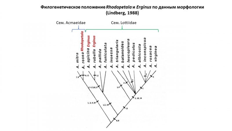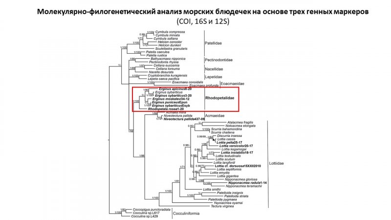 А филогенетический анализ брюхоногих моллюсков из отряда Patellogastropoda (морские блюдечки) выявил монофилетическую группу в этом отряде, которая описана как новое семейство Rhodopetalidae.