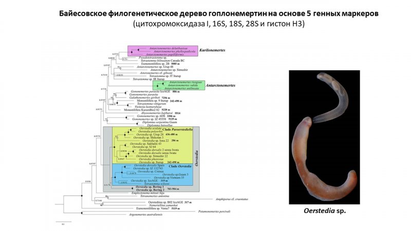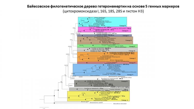 Глубоководные исследования были отражены также в результатах молекулярно-филогенетического анализа фауны немертин Берингова моря. Совместная работа зоологов и генетиков показала, как происходило видообразование этих червей на многокилометровых глубинах - в батиали и абиссали.