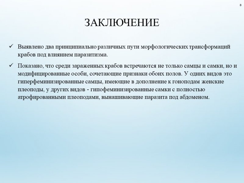 Были достигнуты результаты и в направлении развития исследования пути морфологических адаптаций к паразитизму у ракообразных.