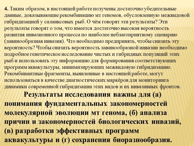 - 1.6.1.7. Механизмы регуляции онтогенеза, 1.6.2.11. Биологические инвазии чужеродных видов и 1.6.3.14. Сохранение биологического разнообразия и биологических ресурсов Российской Федерации – в 3 результатах.